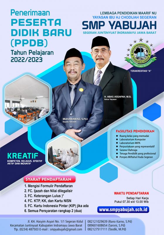 Pada hari Sabtu 14 Oktober 2020 telah diselenggarakan kegiatan Penilaian Kinerja Kepala Sekolah (PKKS) Tahun 2020 oleh Pengawas Dinas Pendidikan Kabupaten Indramayu, yaitu Drs. Toto Suparto, M.Pd., Rakhmat Priyanto, S.Pd dan Drs. A. Gunawan, M.Pd.I Pemandu acara pada kegiatan PKKS adalah Tasdik, M.Pd selaku sekretaris panitia PKKS. Kegiatan diawali dengan Doa bersama untuk meminta kelancaran kepada Allah SWT, dilanjutkan dengan menyanyikan lagu Indonesia Raya kemudian Kepala SMP Yabujah Segeran Muhammad, S.Pd.I. memberikan sambutan “Terima kasih Bapak Ibu panitia atas upayanya dalam mempersiapkan segala sesuatu untuk kegiatan PKKS ini, semoga kegiatan dari siang hari ini dapat berjalan lancar sesuai harapan. PKKS ini yang dinilai bukan hanya kepala sekolah, tetapi PKKS mencerminkan kinerja kita semua. Untuk itu marilah kita tetap bersemangat dalam meningkatkan kinerja kita sehingga mendapatkan hasil yang optimal dan membawa kemajuan serta keberkahan bagi SMP Yabujah Segeran. Adapun tujuan kegiatan PKKS dilaksanakan di semua sekolah adalah :